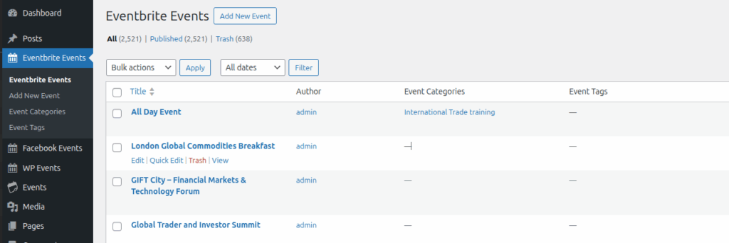 Event Categories for Event Import: This option helps you import events and assign them to the chosen categories.