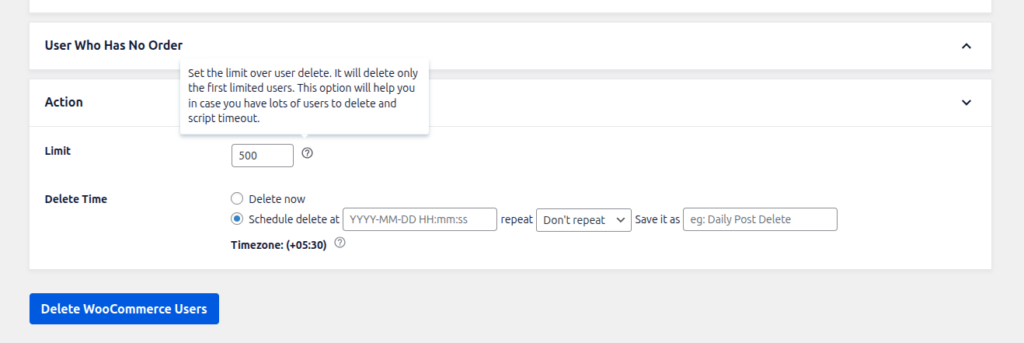 Detele Time:- WP Bulk Delete Pro provides functionality to schedule deleting at a particular time. and You can choose the scheduled at option at Delete Time to schedule delete. it has 2 options.