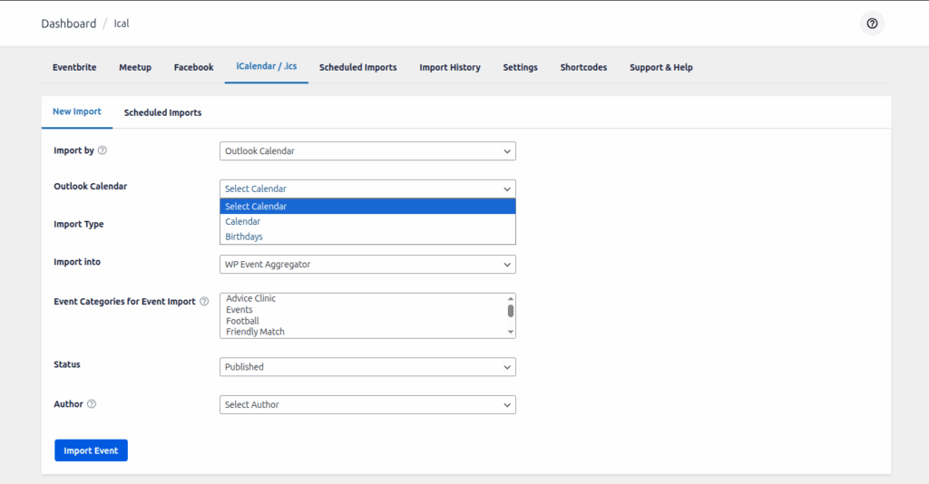 Let’s say you use Outlook Calendar to manage events and would like to publish those events to your site’s calendar. Thanks to WP Event Aggregator, there’s no need to manually re-publish those events. You can simply import them. You can choose to do a one-time import, or set up a recurring import to happen automatically.