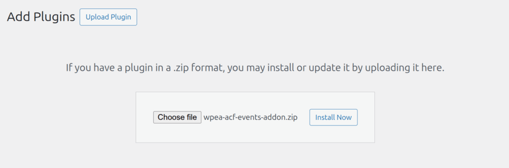 We have introduced the WPEA ACF Events Addon as an add-on to the WP Event Aggregator, Therefore, you need to install both of the Free and Pro plugins of WP Event Aggregator to use the add-on. You can see how to install WP Event Aggregator (Free and Pro) from Here.