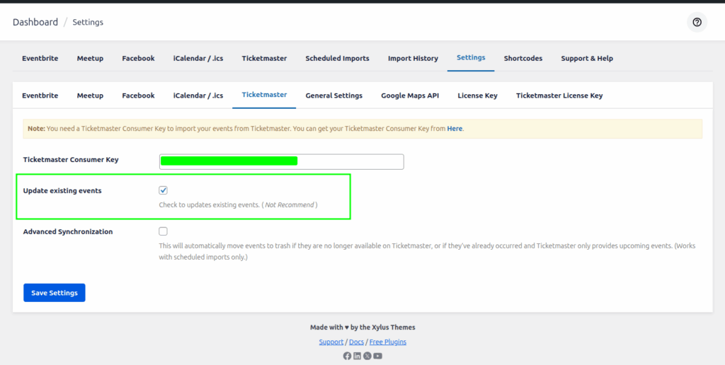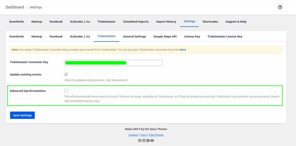 Advanced Synchronization: It enables advanced synchronization with Ticketmaster means if events get removed from Ticketmaster it will auto remove on your website as well.